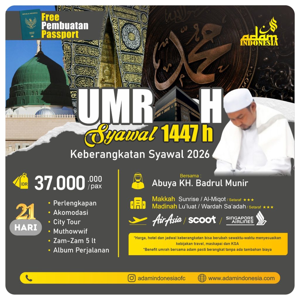 Kini, kami menghadirkan Program Umroh Syawal 21 Hari bersama KH. Badrul Munir, dengan bimbingan langsung dari beliau insyaallah perjalanan ibadah tidak hanya berfokus pada ritual umroh, tetapi juga pembinaan ruhiyah, pendalaman ilmu, dan ketenangan jiwa di Tanah Suci.